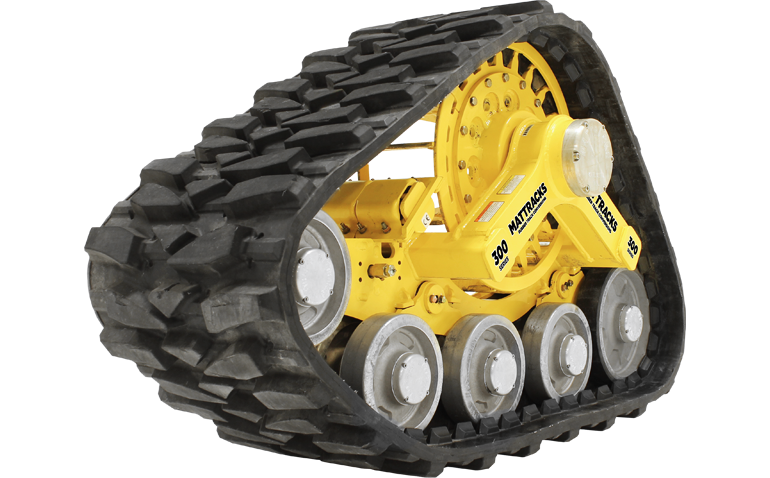 Ideal for use on commercial vehicles weighing up to 30,000 lbs that require off-road mobility. Designed for heavy loads and smooth rides, the 300M1-A1 track conversion system features a 20" wide track. The 300 Series is a hub mounted design in order to facilitate a fast conversion from tires to tracks with little to no vehicle modification. This model also features Mattracks exclusive, patented rubber torsion anti-torque system, steering assist, and rocker suspension.